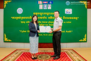 សូមជម្រាបជូនថា វគ្គបណ្តុះបណ្តាលនេះរៀបចំឡើងក្រោមគម្រោងលើកកម្ពស់ភាពធន់នៃសន្តិសុខសាយប័រនៃព្រះរាជាណាចក្រកម្ពុជា ដែលជាគម្រោងទទួលបានជំនួយបច្ចេកទេស និងការគាំទ្រពីរដ្ឋាភិបាលជប៉ុនតាមរយៈភ្នាក់ងារសហប្រតិបត្តិការអន្តរជាតិជប៉ុនប្រចាំកម្ពុជា និងជាការចូលរួមចំណែកដល់ការអនុវត្តគោលនយោបាយជាតិផ្តោតលើការលើកកម្ពស់ការអភិវឌ្ឍសមត្ថភាពដល់មន្ត្រីរាជការជំនាញនៅតាមក្រសួង-ស្ថាប័នរដ្ឋ លើជំនាញផ្នែកសន្តិសុខសាយប័រផងដែរ។